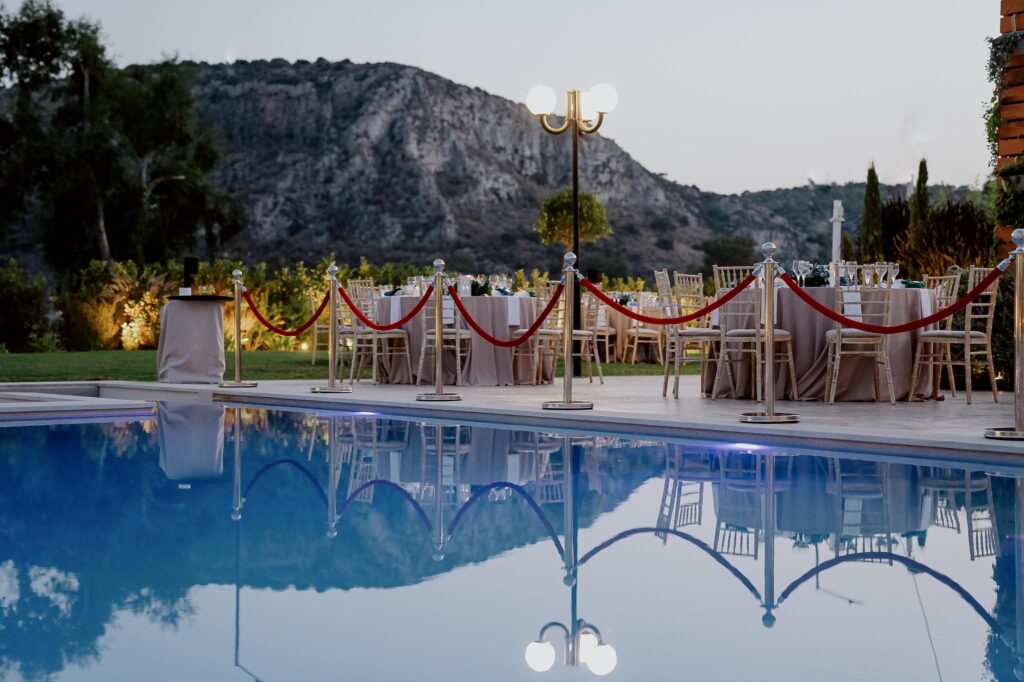 Τους ανοιξιάτικους και καλοκαιρινούς μήνες, ο εξωτερικός χώρος του κτήματος μας αποτελεί ιδανική επιλογή για αξέχαστες στιγμές στη φύση. Σε έναν καταπράσινο κήπο, με μοναδική θέα στην πισίνα και το γύρω τοπίο, θα βρείτε έναν χώρο που συνδυάζει την πολυτέλεια με την άνεση, ιδανικό για δεξιώσεις, γαμήλιες τελετές και εκδηλώσεις.