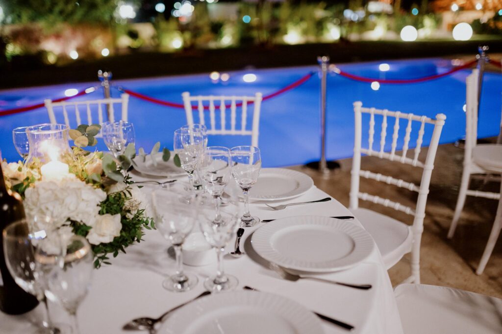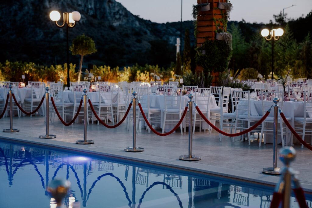Τα καλαίσθητα διαμορφωμένα μονοπάτια και οι προσεγμένες γωνιές με τα αρωματικά φυτά δημιουργούν ένα ατμοσφαιρικό σκηνικό, που θα εντυπωσιάσει εσάς και τους καλεσμένους σας. Με την ευελιξία του και την εγγύηση ποιοτικών υπηρεσιών, ο εξωτερικός μας χώρος προσφέρει την απόλυτη αίσθηση ελευθερίας και σύνδεσης με τη φύση, χαρίζοντας μαγευτικές αναμνήσεις σε κάθε περίσταση.